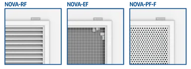 NOVA-EF is a ventilation grille with a filter, for wall or ceiling installation in a range of settings. It is mainly used for air extraction in re-circulation systems with fan coils.